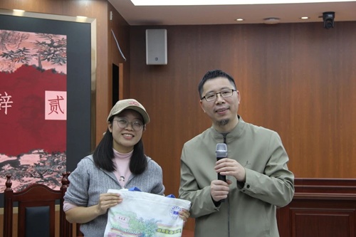 湖大辩论队为孩子们准备了精美礼品,蒋老师代表湖大辩论队向燕山二小王老师赠送了湖大文创产品。