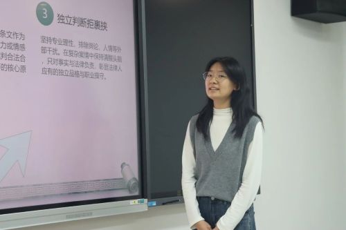 第三位选手马茹同学以岳麓书院平面示意图入手,将“千年学府”与“现代法学”融合,串通起千年文脉与法治未来。讲述过程中,她围绕91论坛