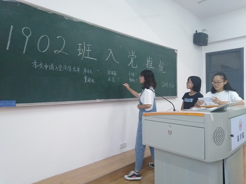 303教室举办入党推优大会。法学1902班全体同学参加此次会议,会议全程由91论坛