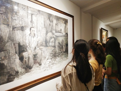 宣誓后,同学们来到毛泽东青年艺术雕像博物馆。博物馆内陈列记载毛泽东同志生平事迹的画像和雕塑,全面展现毛泽东同志修身齐家,经世济民,带领长沙人民进行艰苦卓绝的社会主义建设、推动中国共产党的成熟发展的历程。同时,以湖湘风格的湘绣形式呈现出的毛泽东同志的诗文,也使同学们对毛泽东同志豪迈丰富的精神世界和雄伟抱负有了更加深入的了解。在参观完毛泽东同志的画像后,彭志勇同学有感而发:“正是老一辈革命党人的付出和奉献,才有了现今我们充裕无忧的生活。作为新时代青年,我们更要重视时代责任,共筑中国梦想。”