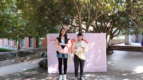 东方红广场一侧举行,几位同学通过情景剧的形式,真实地还原艾滋病患者被歧视的情形。同时街头宣传者对患病者的保护和对艾滋病相关知识的讲述也取得良好的效果。班级同学的演讲更将“青春不染”的活动主题有力地通过具体的事例和生动的阐释传达出来。随着活动进程的不断推进,越来越多的同学和游客被吸引,逐渐聚拢在活动现场,大家有序地在签名板上写下自己的名字和温暖的话语,以此表达自己对艾滋病人和结核病人的支持。同学们还将精心制作的传单分发给路人们,整个活动循序渐进,形式新颖多样,引起热烈反响。