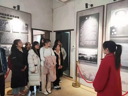 在肖劲光大将故居,导游带领学生参观并向学生讲解肖劲光大将的生平事迹和革命家风范,同学们增强了对革命历史的了解,坚定热爱祖国、继承革命先辈精神的信念。