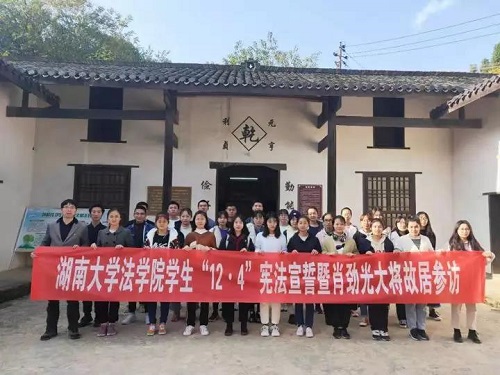 蒋海松老师带领法学1903班全体学生参观肖劲光大将故居并进行宪法宣誓。