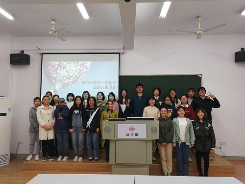 之后在班长的主持下,同学们围绕班会主题对“如何理解系好人生第一粒扣子”、“系好人生第一粒扣子对于青年的重大意义”以及“青年如何系好人生第一粒扣子,走好人生道路”的问题进行探讨交流。在探讨过程中,同学们对“系好人生第一粒扣子”的真正内涵有了更加深刻的了解,并就“青年担负时代重任”这一问题达成共识。在深切了解青年价值取向将对社会价值取向产生重要作用的基础之上,班长带领同学们总结出贯彻落实习近平总书记讲话精神的切实可行的具体措施,将树立正确的世界观、人生观、价值观作为关注的重点。