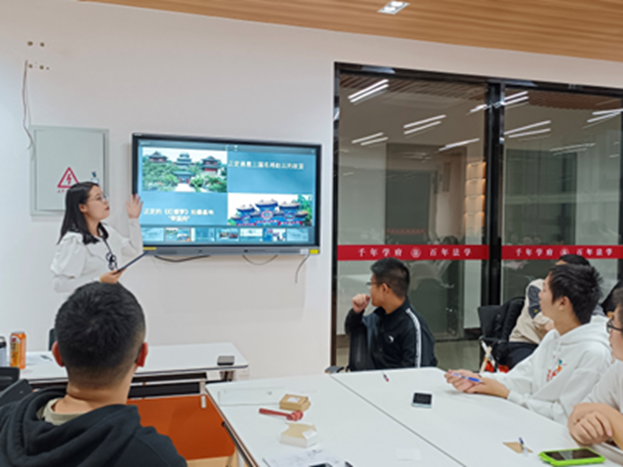 “逆溯时光,寻梦年少”环节,同学们共同观看青春主题教育短片《青春不迷茫》。章黎婧、黄海芳两位同学向大家分享了观看短片的感想及对“儿时的梦想”的解答,引发了同学们的共鸣。“筑梦时代,大有可为”环节中,在习近平总书记在二十大开幕式上对青年寄语的指引下,同学们就家乡的法治建设成就与特色进行分析和分享,讨论作为一名法学专业学生,应如何将个人专业发展融入家乡法治建设之中,以点滴积累创造卓越成就。
