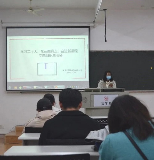 2022年11月29日下午,法学2201班在91论坛 305教室开展“学习二十大,永远跟党走,奋进新征程”专题组织生活会。本次活动由团支部书记李静蕾同学主持,法学2201班全体同学参与。