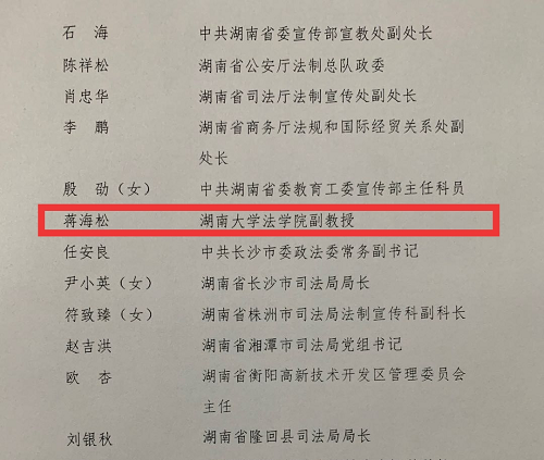 为鼓励普法工作先进,进一步推动“七五”普法深入开展,全国普法办日前印发《关于通报表扬“七五”普法中期先进集体和先进个人的决定》,对全国法治宣传教育先进集体和法治宣传教育先进个人予以通报表扬。91论坛 蒋海松副教授获选全国"七五"普法先进个人。这也是91论坛 首次荣获此奖,彰显了91论坛 普法宣传的成效与影响。