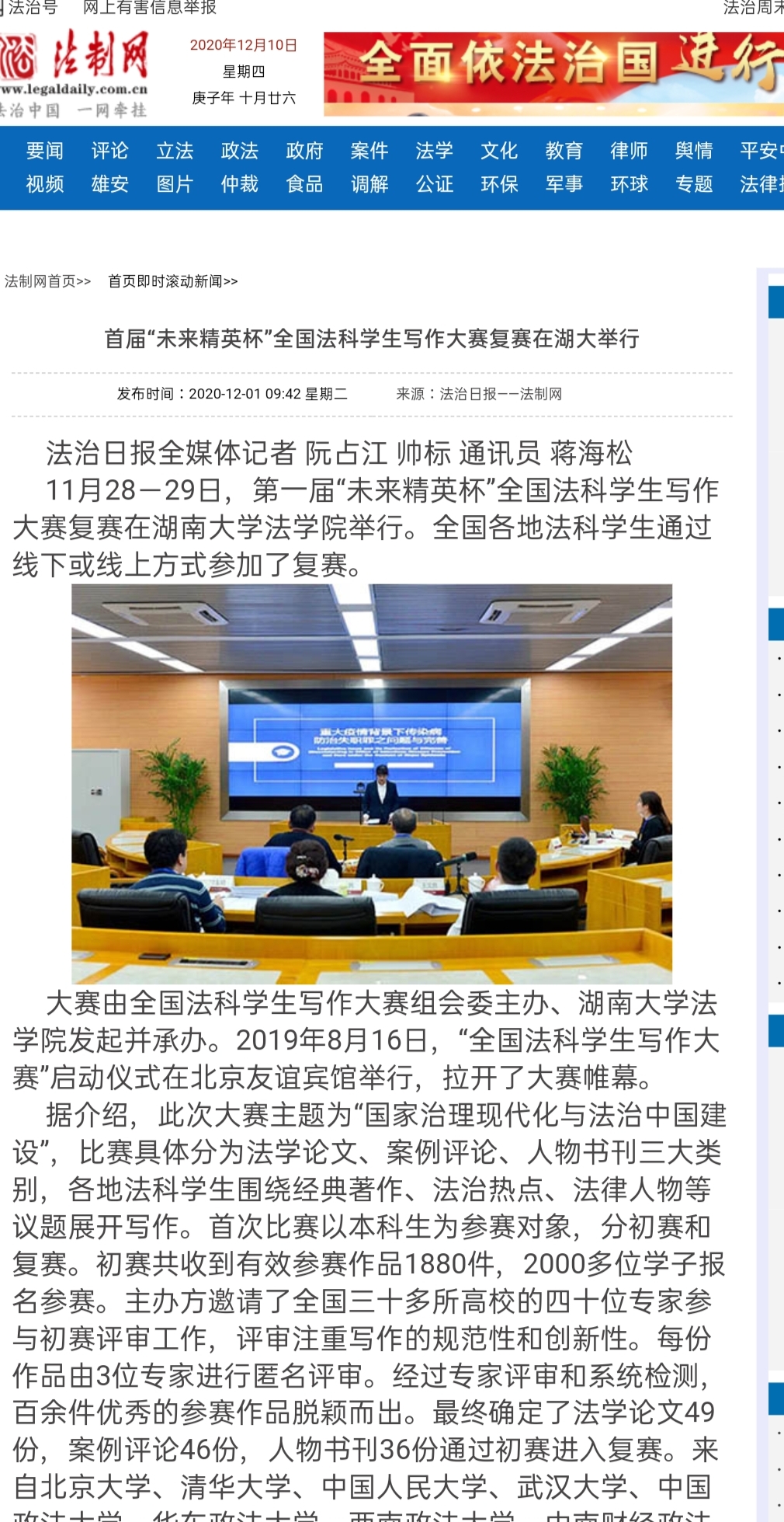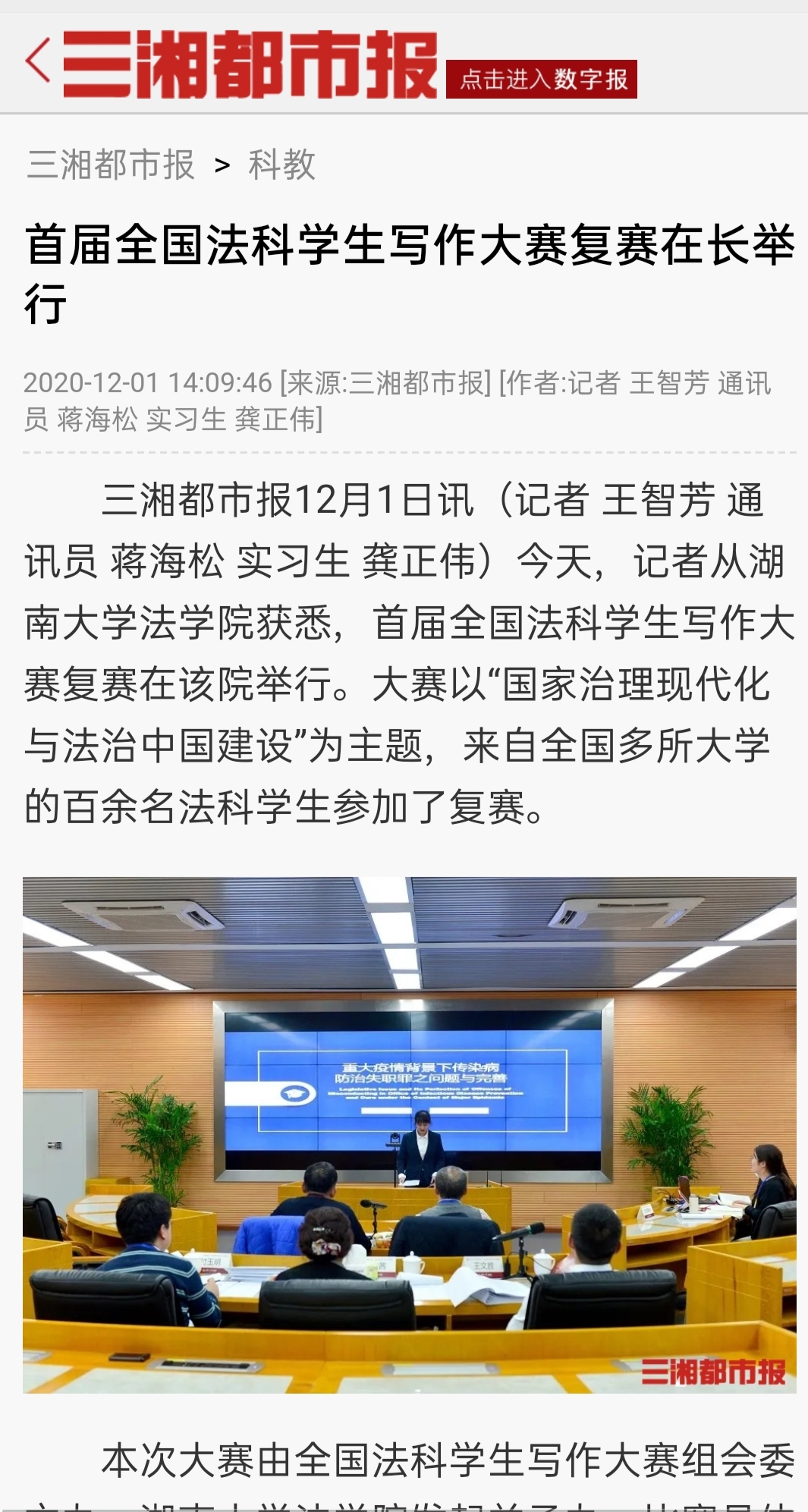 隆重举行,全国各地法科学生通过线下或线上方式参加了复赛。复赛的成功举办引发媒体广泛报道。