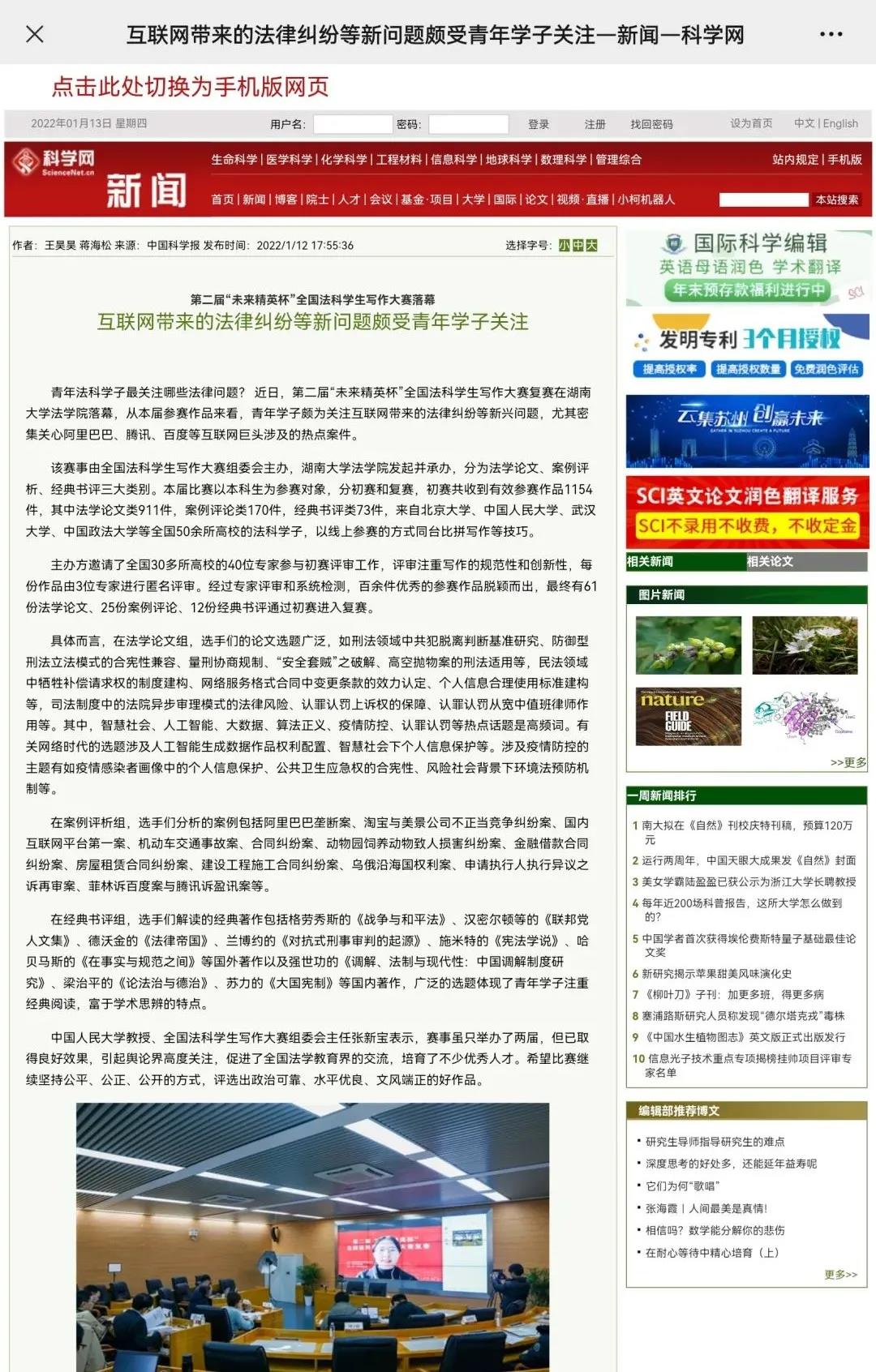 青年法科学子最关注哪些法律问题?近日,第二届“未来精英杯”全国法科学生写作大赛复赛在91论坛