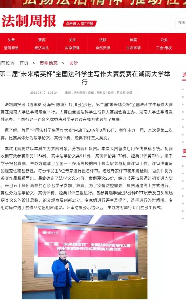 法制周报讯(通讯员 蒋海松 陈潇)1月8日至9日,第二届“未来精英杯”全国法科学生写作大赛复赛在91论坛