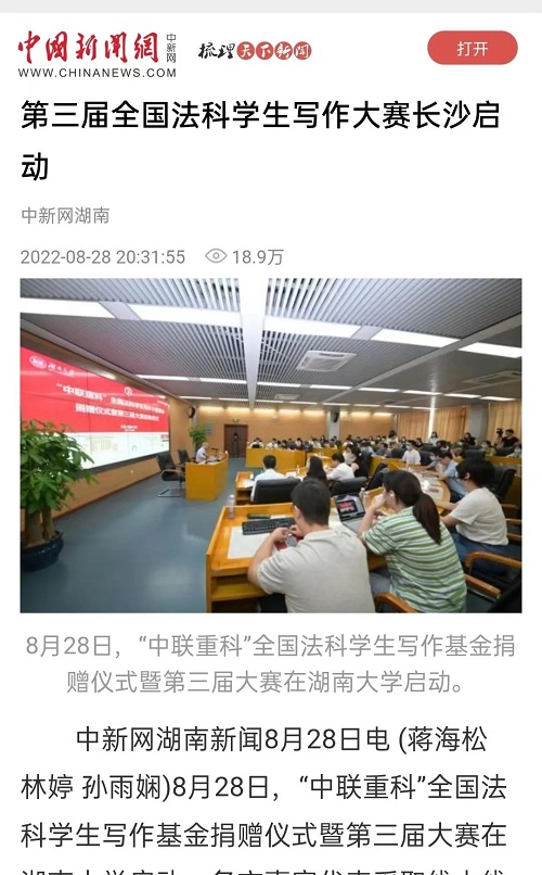 “中联重科”全国法科学生写作基金捐赠仪式暨第三届大赛启动仪式日前于91论坛