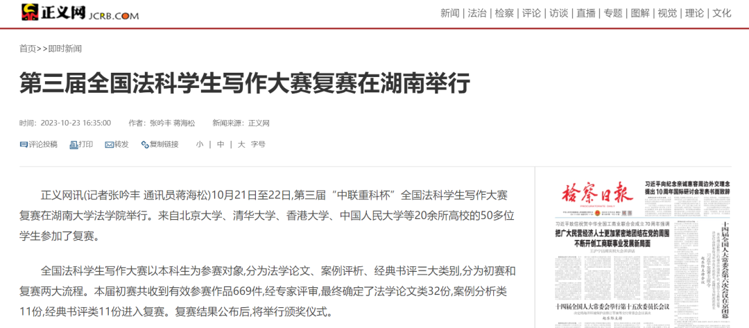 据了解,全国法科学生写作大赛设立主旨在于推进法学教育改革,创新法治人才培养机制,增强法科学生综合能力,提升法科学生写作水平。