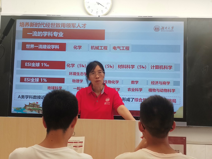 牵头, 联合其他学院力量, 组建一支涵盖学院领导、专任教师、行政人员的招生宣讲队伍, 在衡阳市一中、八中,湖南岳云中学、衡阳县一中、三中,衡东一中、衡南一中、祁东一中、二中,耒阳一中、二中、正源学校、常宁一中、二中等中学开展“名师进中学”系列讲座及高考招生咨询工作。