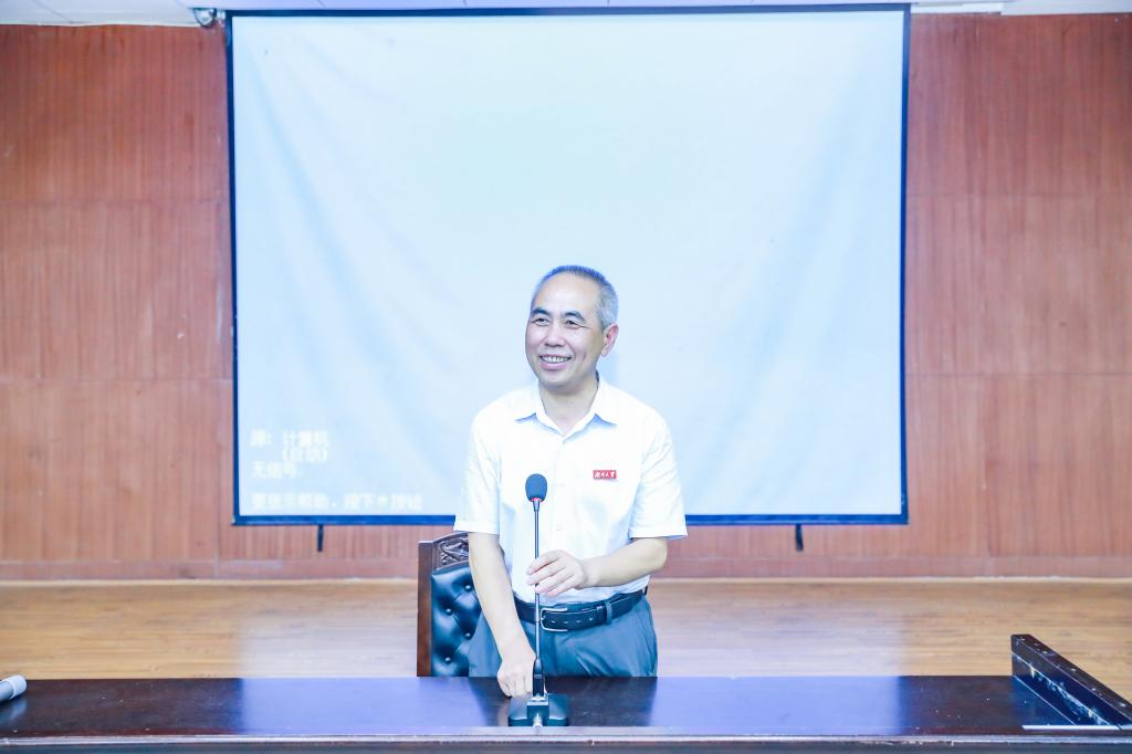 湛建云副院长随后致辞。他对在场每一届学生人数如数家珍,并给了所有结业同学一个大大的赞。他说道今年非常流行的一句话叫做“反内卷,去躺平”,大家有时确实会觉得生活艰辛,但是不妨把心态摆正,尽量减少焦虑。另外,他希望大家永远不要失去奋斗的目标,不管是否从事法律职业,永远保持有所追求。人生就似一列飞奔的列车,湖大求学只是其中的一个站点,结业也只是一个阶段。旅途还在继续,我们没有理由去放下心目中的梦想。最后,他祝愿大家有一个强健的身体,只有身体康健,一切才有意义,一切才皆有可能。