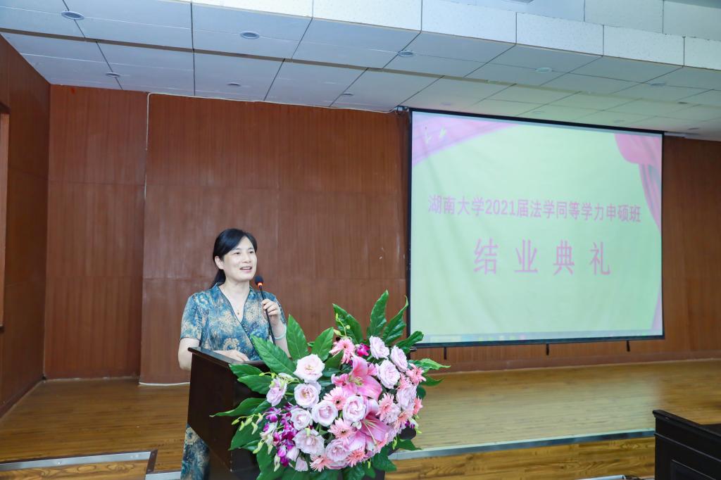 院长屈茂辉,副院长湛建云、副院长蒋海松、授课老师代表郭哲、肖洪泳、邱昌茂老师以及同等学力办公室各职能负责人出席典礼。典礼由同等学力申硕办王蕾老师主持。