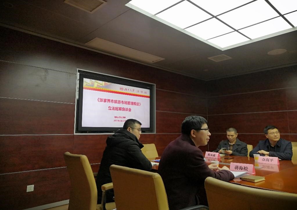 立法团队起草制订《张家界市旅游市场管理规定》,由蒋海松副教授领衔负责本次立法起草工作。曹薇薇、汪全军、周宇骏、曹庭等对地方立法深有研究及有地方立法经验的专家组成法律服务团队参与此次立法工作。