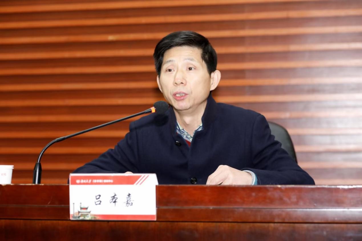 湖南省委组织部干教处处长吕本嘉在开班仪式上致辞。他介绍了举办本次研修班的背景和干部教育培训的重要意义,强调了干部培训的纪律要求,对大家做了严格要求。他提出爱学习,贵在坚持,我们广大干部要坚持在学习中工作,在工作中学习,将学习当作一种生活方式,利用高校的资源,拓宽视野、更新观念、提升能力,形成常态化机制。他对本次研修班提出了殷切的希望,鼓励全体学员勤奋学习,善于思考、学以致用、遵守纪律,保持这种学习的热情。