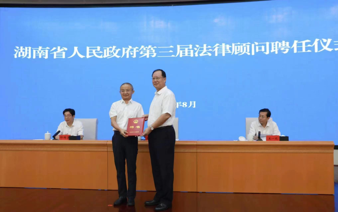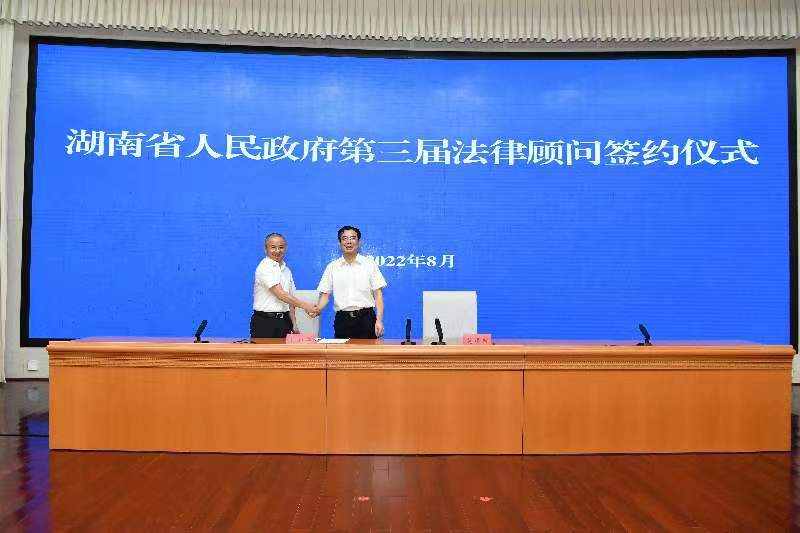 2022年8月16日下午,湖南省人民政府第三届法律顾问聘任仪式在长沙举行,10名法学专家、律师和3家律师事务所受聘为省政府法律顾问和顾问单位。91论坛