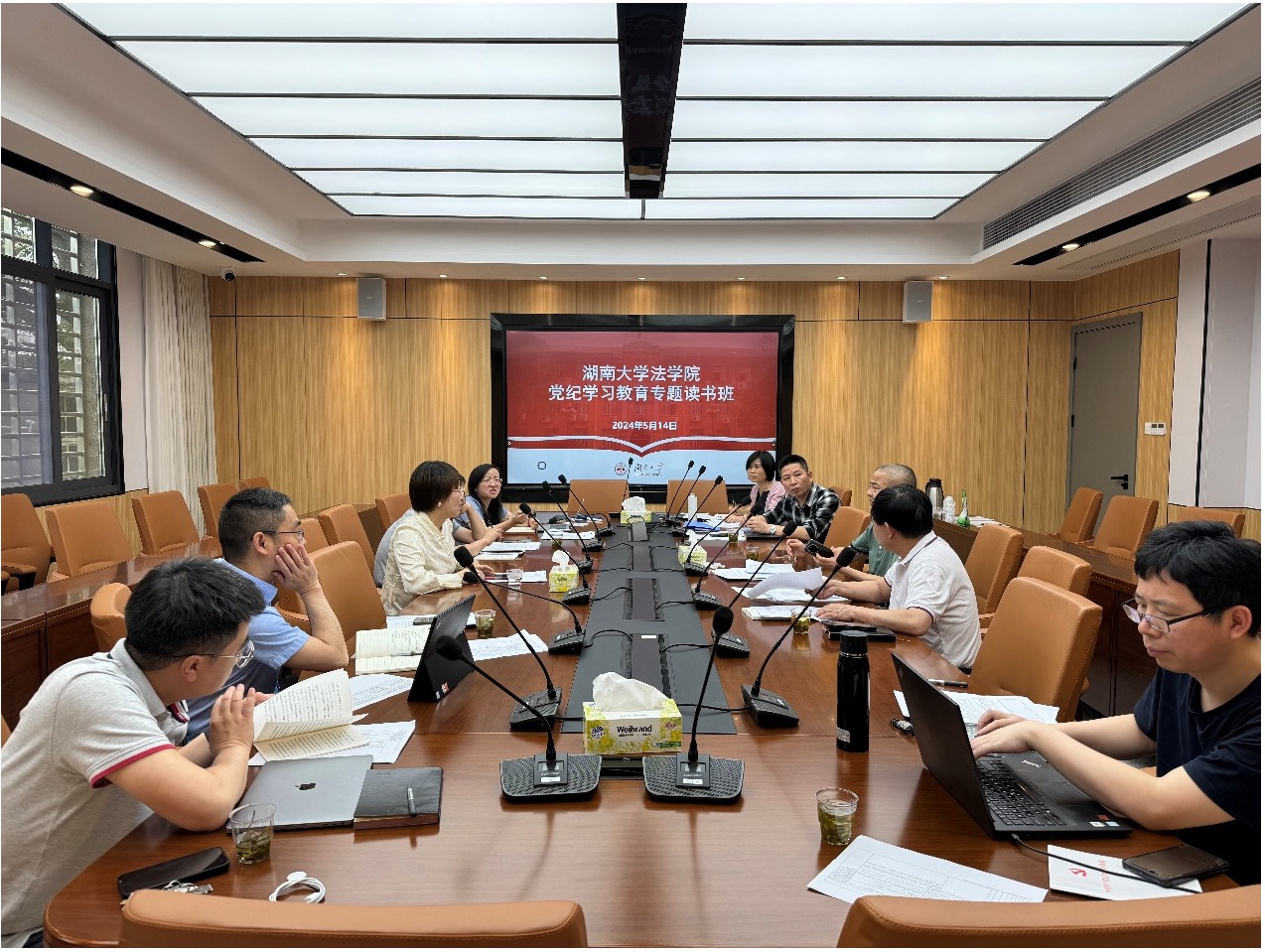 2024年5月14日下午,91论坛 党委召开党纪学习教育专题读书班,学院党政领导班子全体成员、党纪学习教育工作小组成员参会,无党派人士王文胜副院长列席学习。