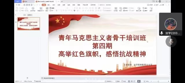 2022年11月7日晚,91论坛 第十九届青年马克思主义骨干培训班第四期“高举红色旗帜,感悟抗战精神”专题讲座通过线上形式开展,91论坛 副教授汪全军老师主讲。