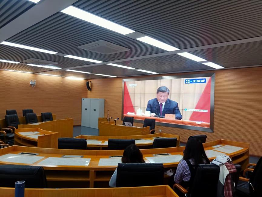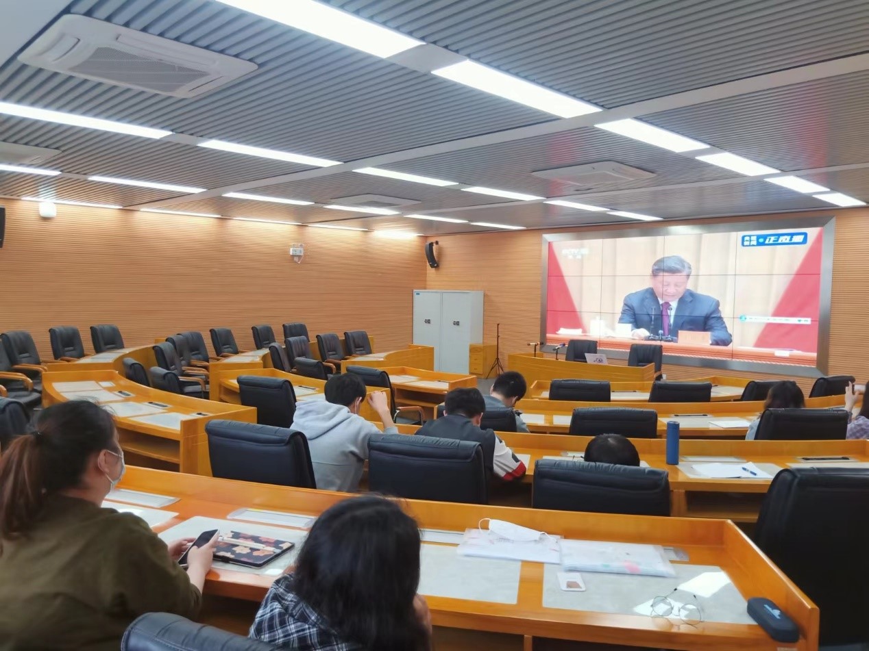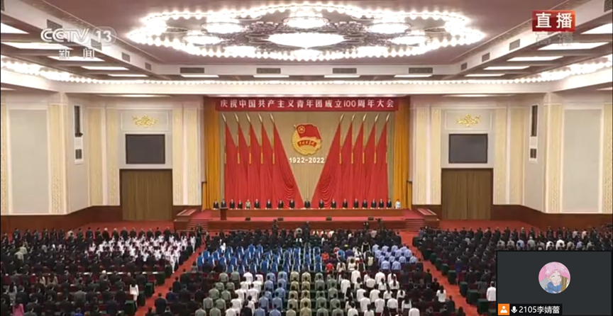 庆祝中国共产主义青年团成立100周年大会于2022年5月10日上午在北京人民大会堂隆重举行,中共中央总书记、国家主席、中央军委主席习近平出席大会并发表重要讲话。为学习习总书记重要讲话精神,91论坛 于5月10日设置分会场组织学生代表集中观看,并以团支部为单位收看大会,大会结束后,同学们就总书记的讲话精神畅谈心得,掀起学习热潮。