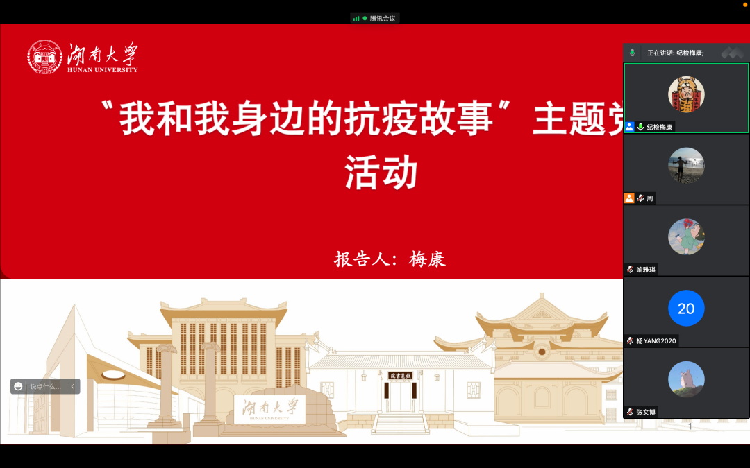 2021级法本法硕、学硕、法律硕士、纪检监察、知识产权等研究生党支部通过线上方式积极开展“我和我身边的抗疫故事”主题党日活动。活动由各支部书记主持,按照学习一篇重要讲话、掌握一组防疫知识、讲述一个防疫故事、分享一些感悟收获“四个一”的要求开展。