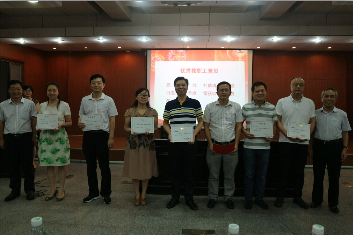 学院党委副书记付蓉芬同志主持会议,院党委书记李连友同志、院长屈茂辉同志以及各基层党支部书记出席了会议,同时参加大会的还有全体教工党员、学生党员代表、获得学院党委表彰的个人和先进集体代表以及部分入党积极分子代表等。